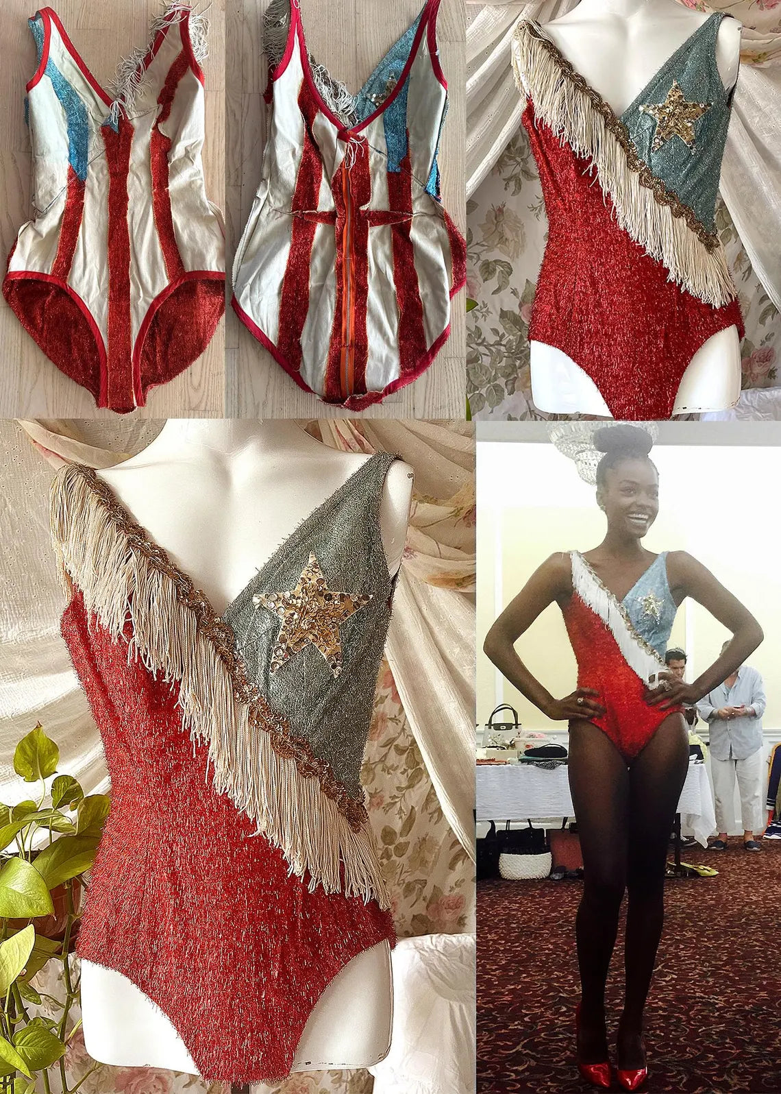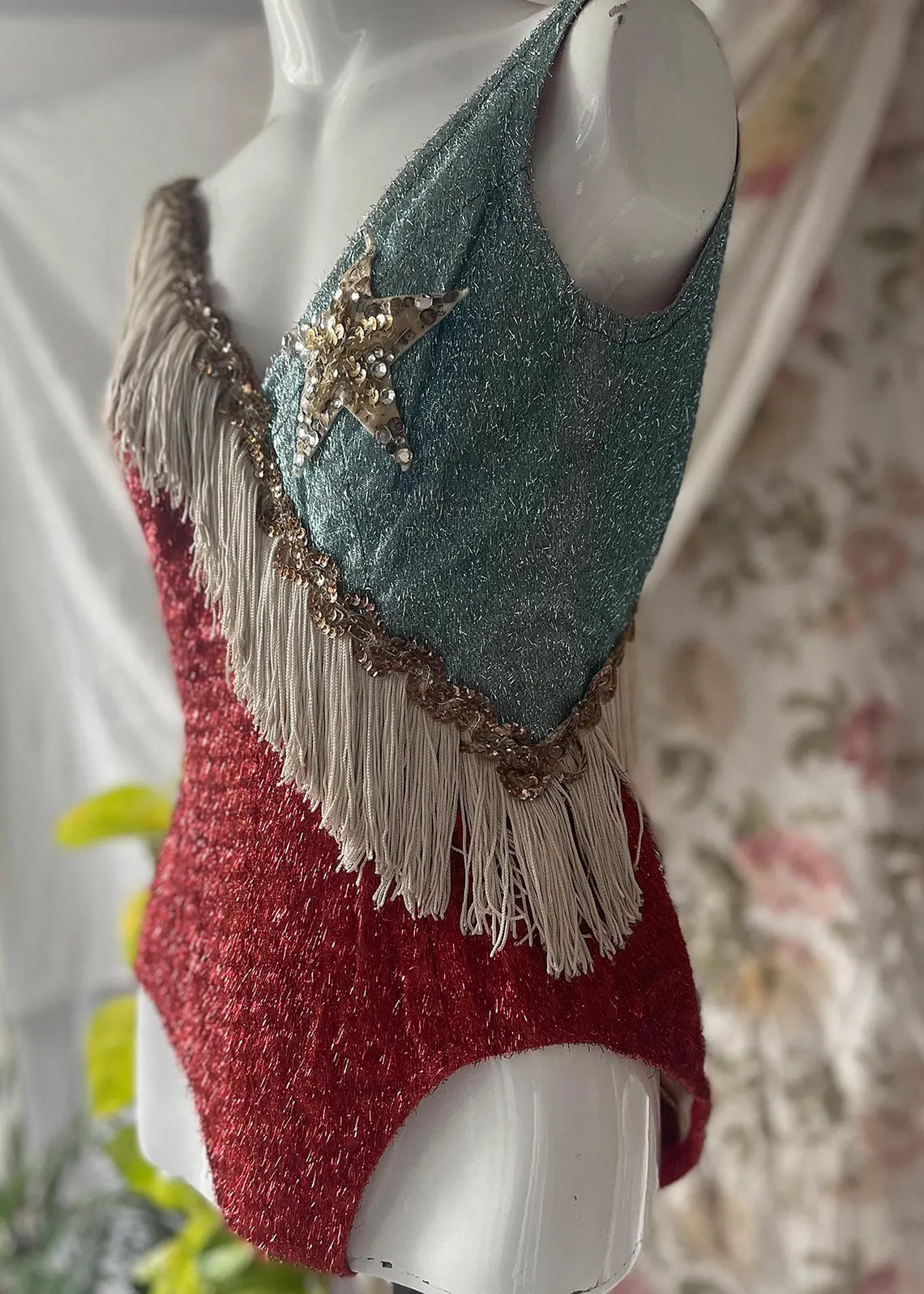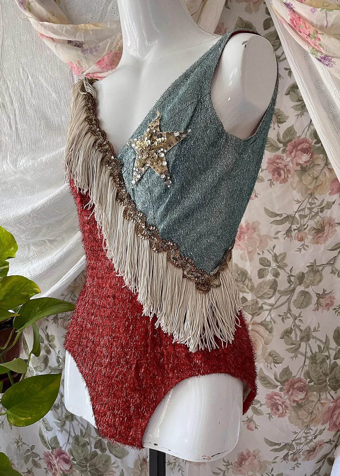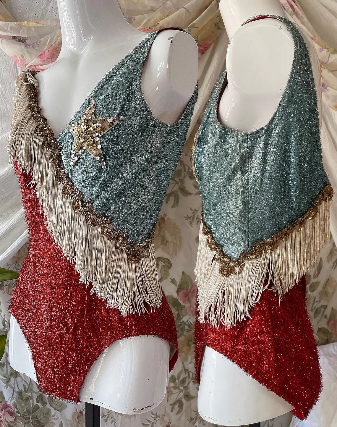 Vintage Authentic Circus of The Stars Red Costume. A rare find indeed. I have had this piece for well over 30 years. I really never expected to sell it as it became a calling card when I would do vintage shows. I would hang it in the middle of my booth to attract attention and attention it got! One day a young man who worked in the TV and film industry stopped at my booth and told me what I had. He said that he worked on the show and remembered this costume. He said you really do have a piece of Vintage Americana History there! This really became a treasure to me and now it can be yours to treasure. You might just want to hang it on the wall! It's such a great conversation piece, but go ahead and wear it if it fits. All you need are a pair of White GoGo boots and out you go! PLEASE NOTE: DUE TO THE RARITY OF THIS ITEM, IT IS NOT RETURNABLE. Please feel free to ask questions. ***PLEASE NOTE: THE ZIPPER WORKS PERFECTLY. **If you would like to hear more about this piece please copy and paste this link to see video: https://www.facebook.com/watch/?v=751841034828260&rdid=vmVFiAVjhwiPoc4p