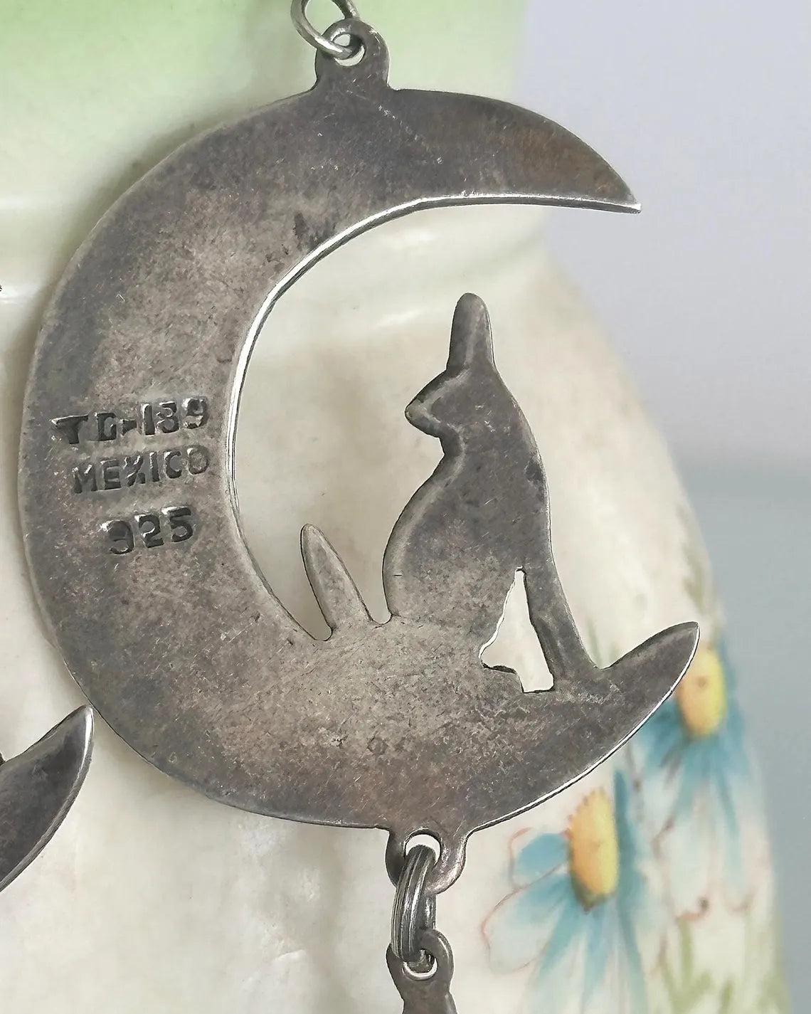 Full Length from top of hook: 3" Width of Moon and Coyote: 1 1/4"